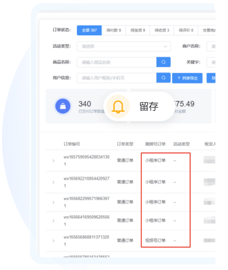 微信开放4.8亿视频号用户红利,支持生态内全链路营销,解决了传统电商、实体获客难的难题。同时,丰富的带货形式(直播+短视频+橱窗)也让卖货变得更加容易。